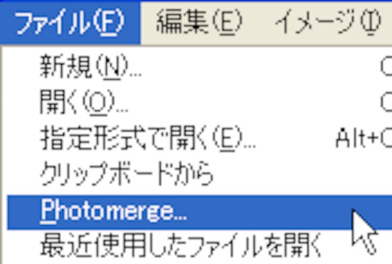[ファイル]メニュー→[Photopemerge]を開きます。