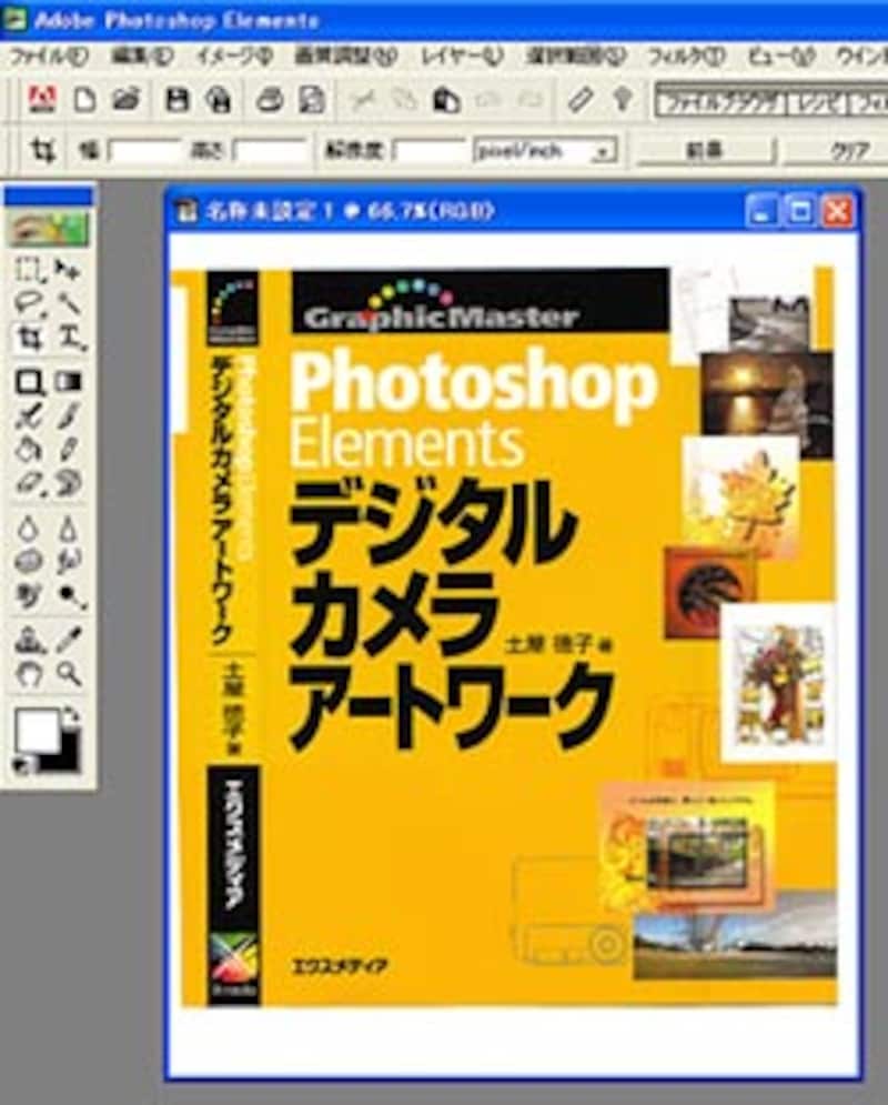 スキャナのフラットベッドより大きいチラシなどをスキャニングして、Photoshop Elementsの[Photomerge]で簡単に補正しながら一枚の画像にする方法を紹介します。