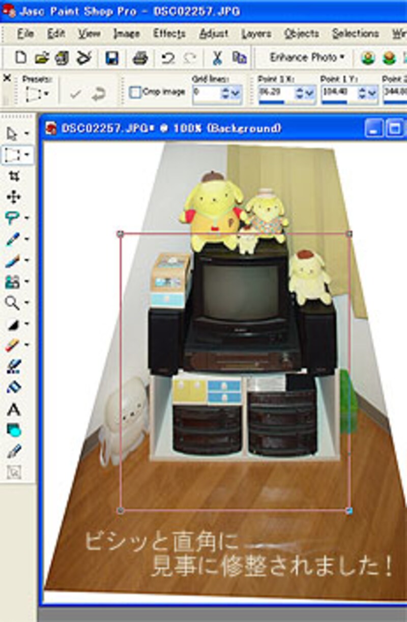 ですから、オークション用の商品の撮影など、どうしてもパースがついてしまう場合の補正にうってつけではないかと思います。
