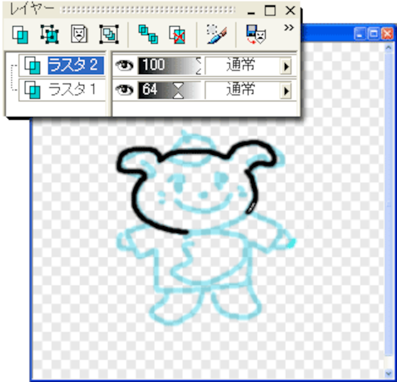この[ラスタ2]に黒い本番の線画を描いていきます。