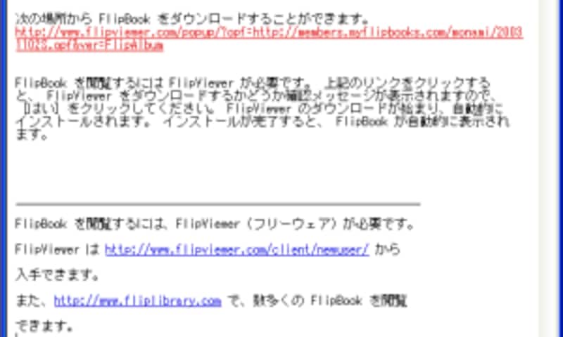 記載されているURLへジャンプすると、アルバム閲覧するための「FlipViewer」のダウンロードが始まり、自動的にインストールされます。その後アルバムが自動的に開きます。もちろん、ページをクリックすると、フリップ音とともに3Dアニメーションでめくりながら閲覧ができます。