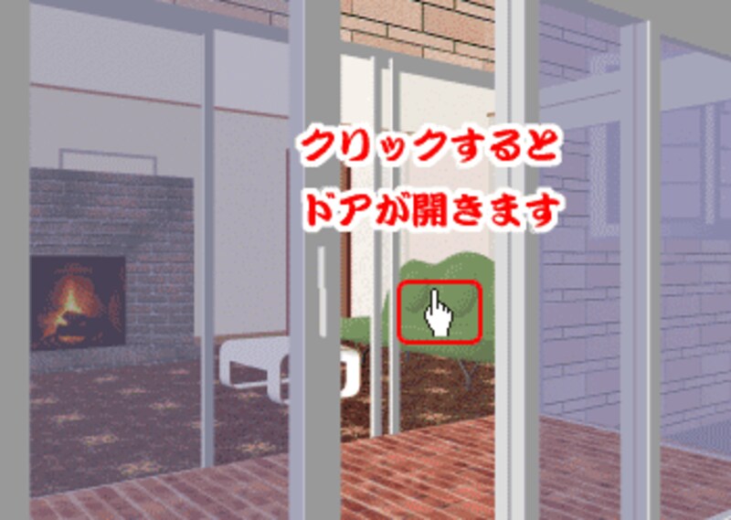 ドアをクリックすると、自動的に「ガチャッ」と音とともに開きます。ちょっとびっくり!