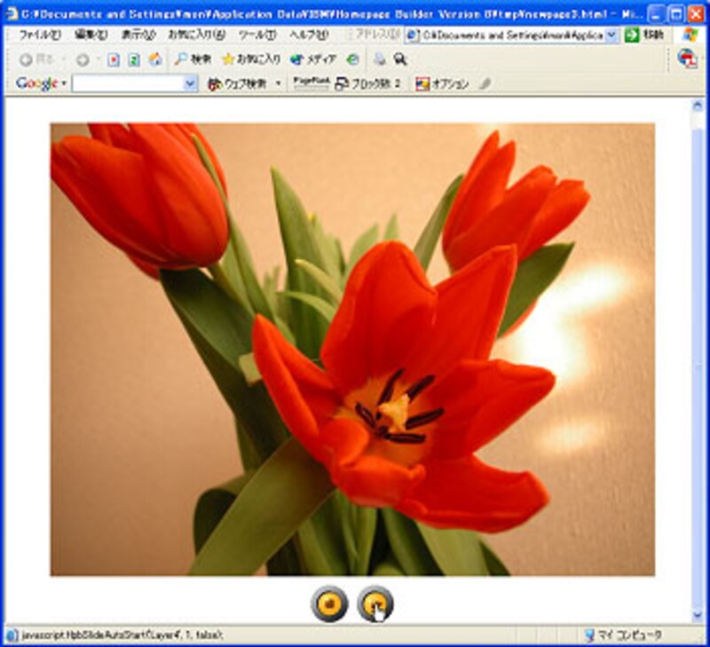 見せたい画像を選び 、画像の大きさや効果の選択をして、クリックして画像を切り替えるボタンを選択します。