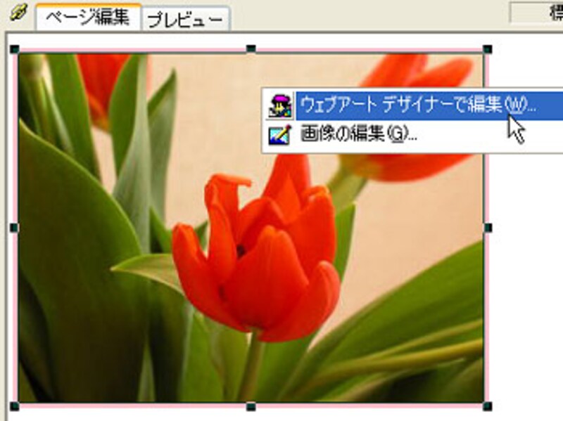 [ウェブアートデザイナー]には素材を読み込んで文字や簡単なイラストを描いたり、加工を加えるなど、一般的なペイントソフトとしての機能も装備されていますので、「画像の加工や修整はホームページビルダーだけ」というユーザーが多いのもうなずけます。