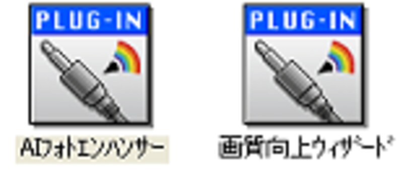 [プラグイン]には[AIフォトエンハンサー]による写真の「ノイズ除去」「シャープ」「カラーバランス」「明るさ」「コントラスト」をワンクリックで自動補正します。また[画質向上ウィザード]では、8つの画面の指示にしたがって調整を加え、画像を目的の結果になるように修整していきます。