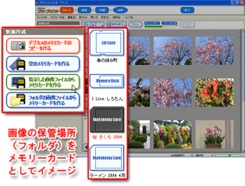 このソフトで取り込んだ画像は、「フィルム」でも「フォルダ」でもなく、「メモリーカード」に納めて管理するというイメージです。メモリーカードから画像を開いたり、移動したり、補正した画像をメモリーカードに納めるという感じ。なるほど、デジカメ時代ならではのユニークな管理方法です。