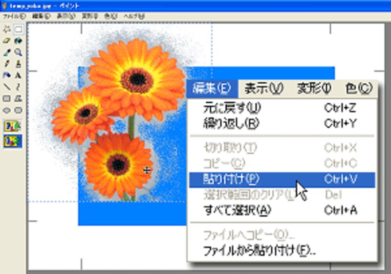 メニューバーの「編集」→「貼り付け」で、花の部分だけがペーストされます。