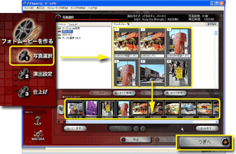 「デジカメde!!ムービーシアター」は静止画の写真を使ってムービーを作り出すソフトです。