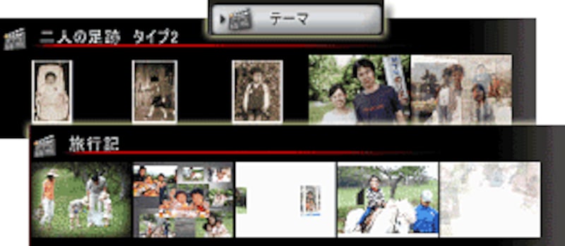 これらの演出テンプレートは、映像表現のプロフェッショナルがデザインしたもの。ですから既成の効果とはいえ、写真を変えるだけで、まるっきり印象が変わるのがまたおもしろいのです。写真や効果をとっかえひっかえすると、知らず知らすいろいろなタイプのムービーが何本もできあがってしまいまうほどです。