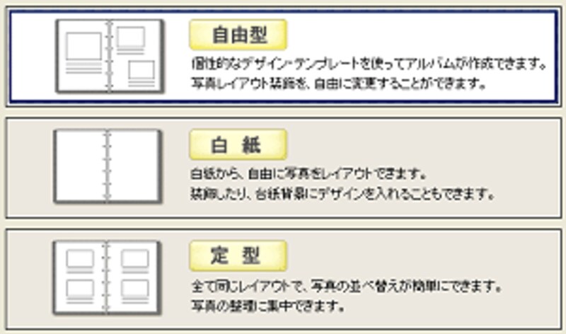 今回のバージョンでは3つのアルバム作成タイプが選べます。