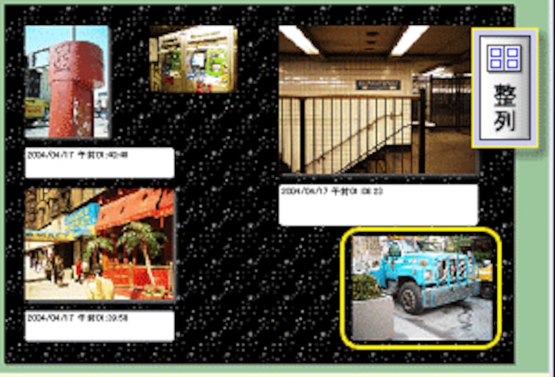 欄外にはみ出してしまった写真も、「整列」ボタンをクリックするだけで自動的に並びを整えてくれます。
