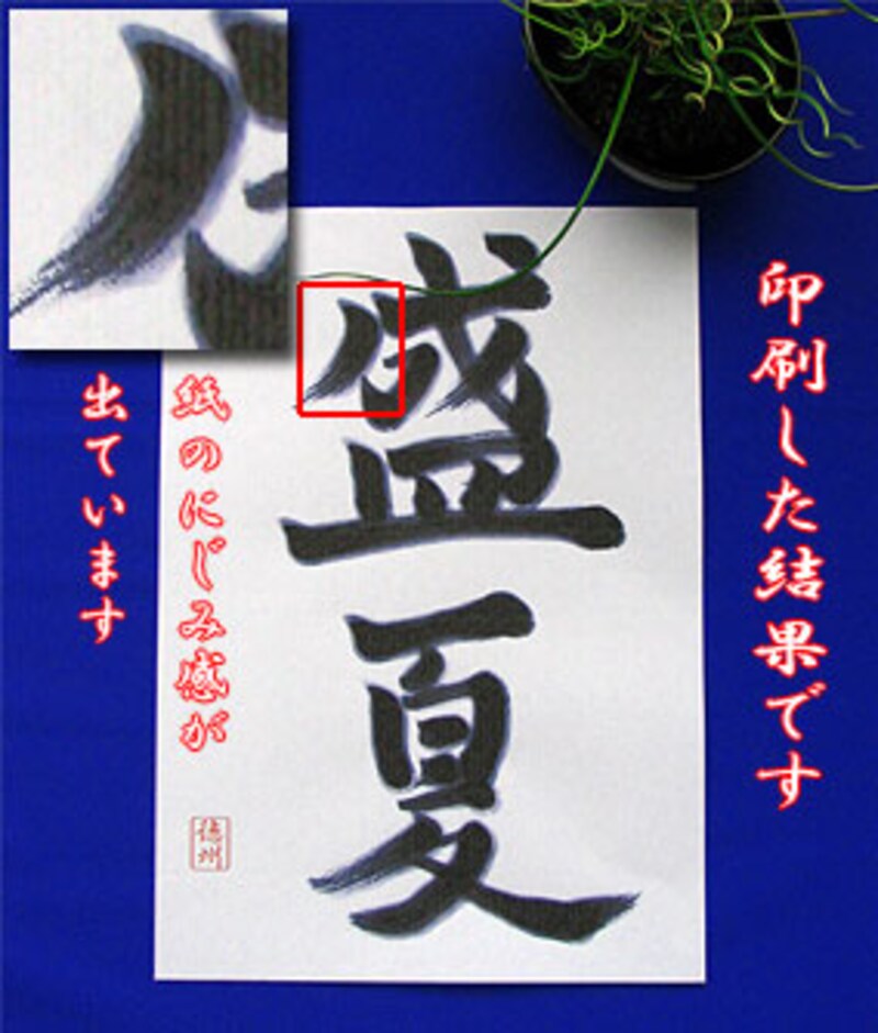 またおもしろかったのが、「紙の選択」で半紙を選び、A4の普通用紙に印刷してみましたら、一見まるで半紙に書いたかのような紙の質感と、にじみ感が表現されていました。