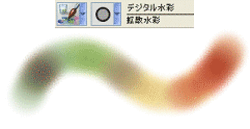 Painter Essentials2には新たにさまざまな水彩のタッチで描くことができる「デジタル水彩ブラシ」が追加されました。これを含めて合計52種類の筆や絵の具などの種類が使い放題です。