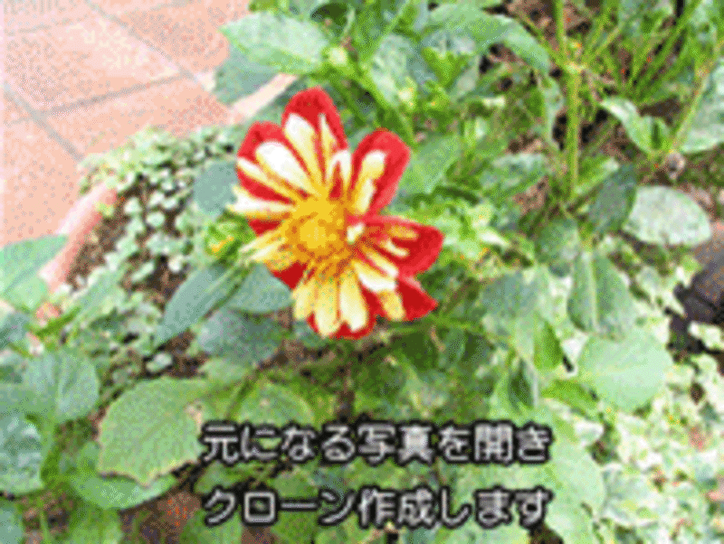 たとえば画像の一部に、他のクローンソースに指定した画像の一部を、ドラッグして描き出し、一枚の絵に仕上げます。