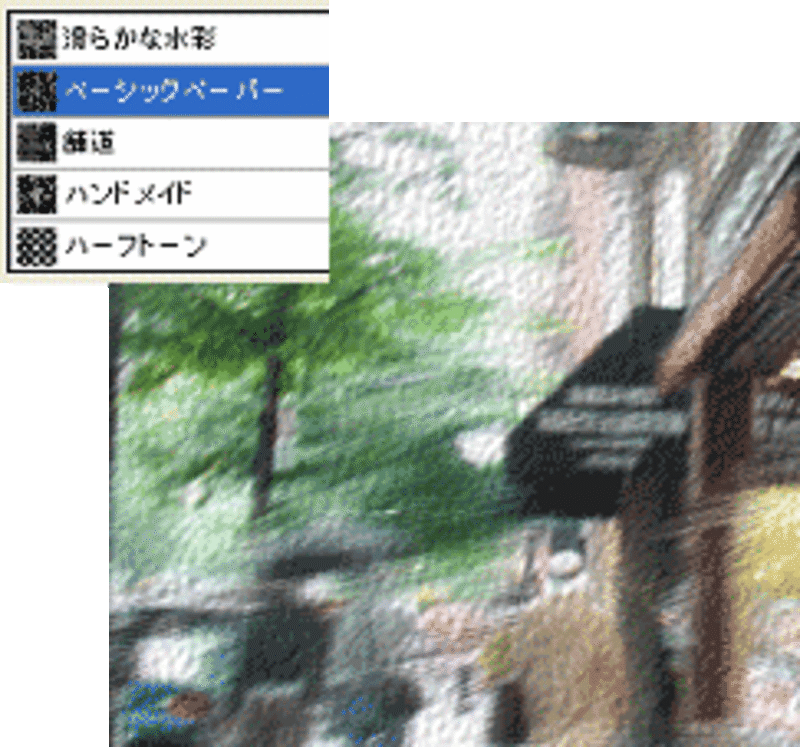 バリアントを変更するだけで、花だけを油彩風に、まわりを水彩風にという描き分けもできるわけです。