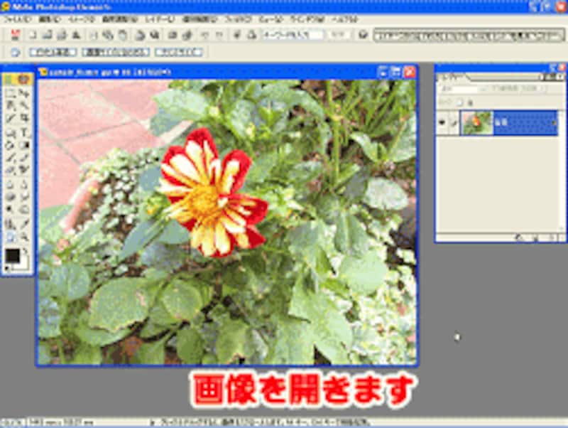 絵手紙作成やハガキ印刷をするための元となる写真を、Photoshop Elements2.0で開きます。