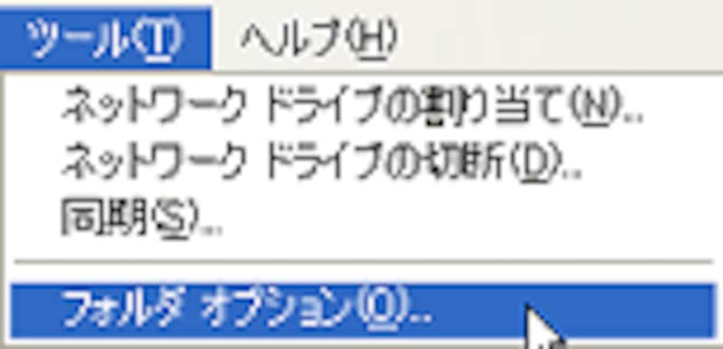 画像フォルダウィンドウのメニューバーの[ツール]→[フォルダオプション]を選びます。