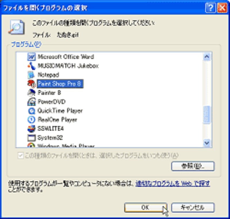 「プログラム」で「Paint Shop Pro8」を関連づけておけば