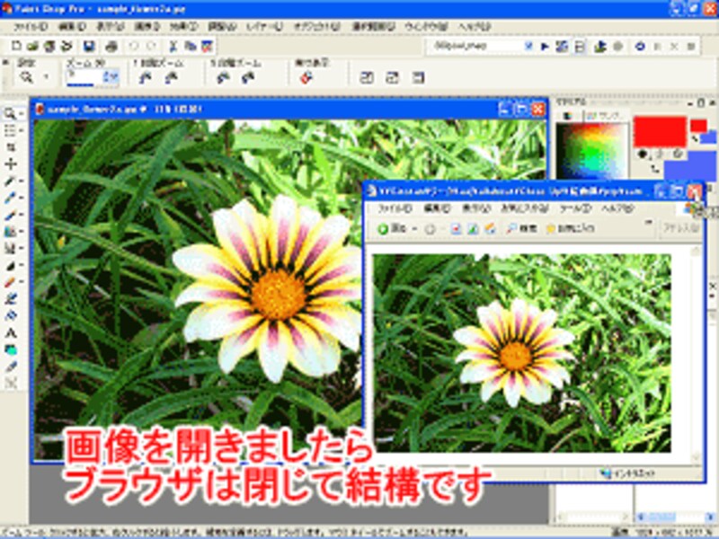 絵手紙作成やハガキ印刷をするための元となる写真を、Paint Shop Pro 8で開きます。