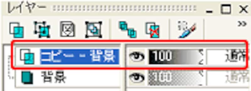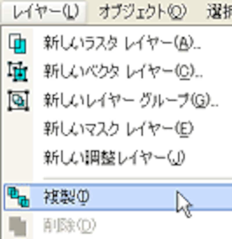 メニューバーの[レイヤー]→[複製]を選びます。するとレイヤーパレットには「コピー-背景」レイヤーが追加されます。