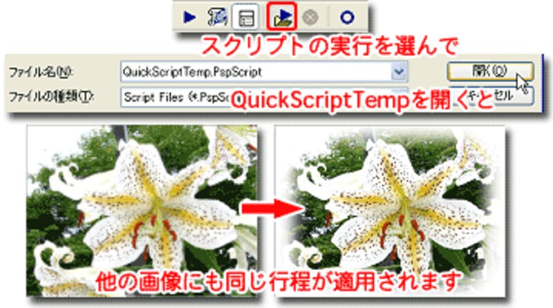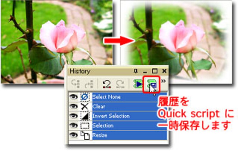 さらにこの履歴をスクリプトとして一時保存をしておけば、一連の操作が他の画像でも同じように適用できます。