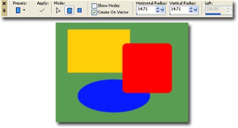まず「Rectangle(長方角)」ツールでは、角の丸みを水平、垂直方向にそれぞれ自由に設定できます。