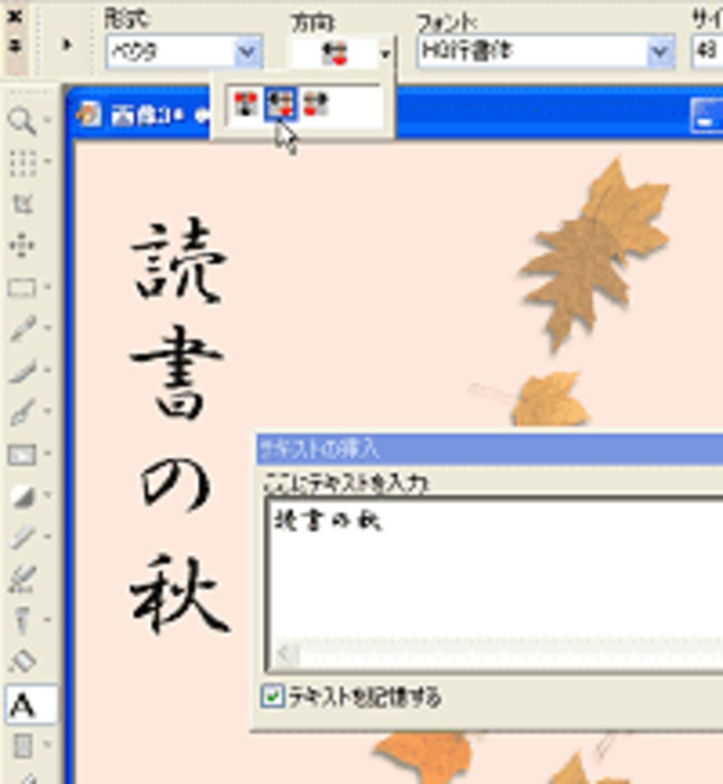 ▲「方向」ボタンクリックひとつで縦書き表示に
