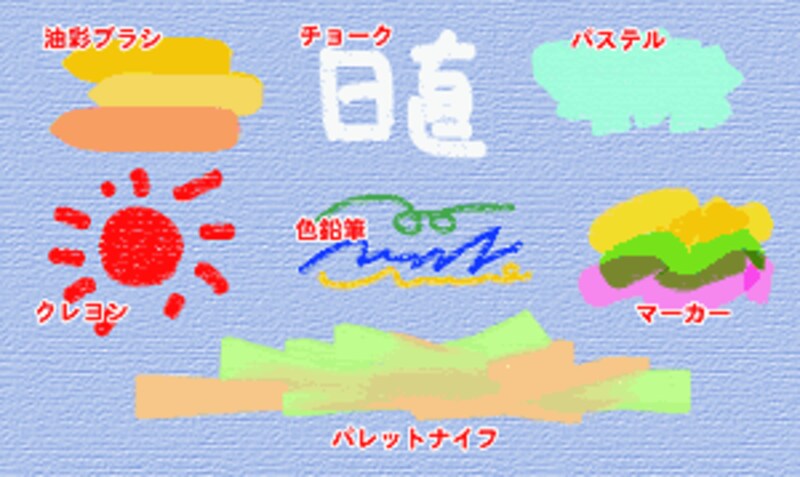 「アートメディア」と呼ばれるこの機能は、某有名ペイントソフトと比べても遜色の無いレベルのもので、非常に使い勝手の良い機能です。筆を塗り重ねると色が混ざるのはもちろんのこと、キャンバスの設定によって質感を変える機能など、ペイント派のユーザーには待望の機能が搭載されています。