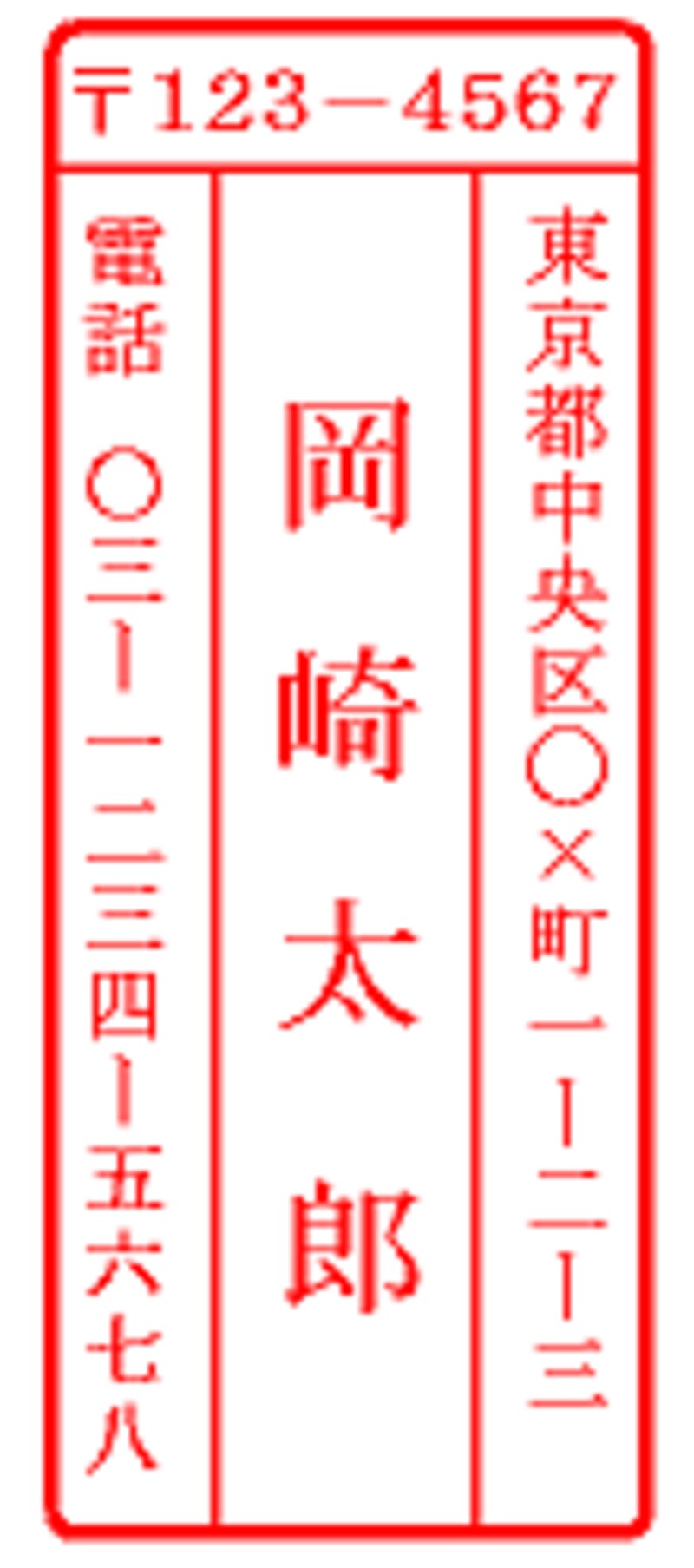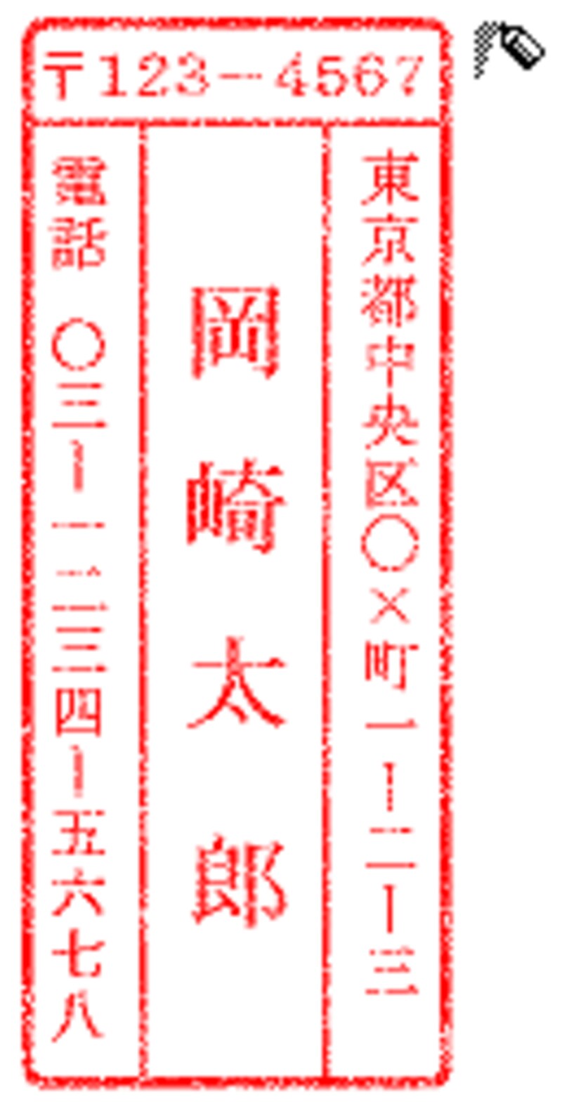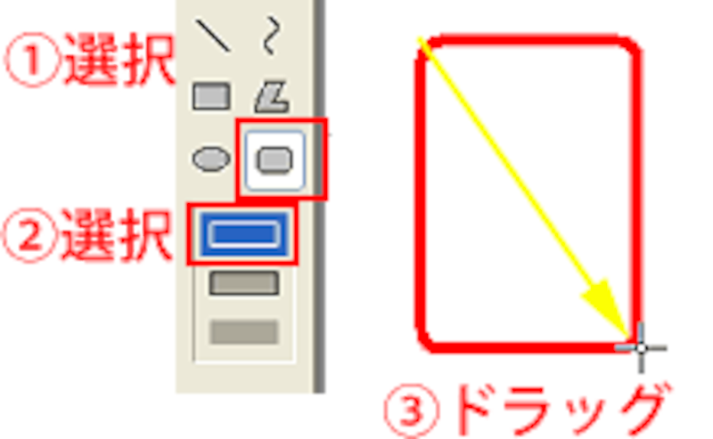 「住所印」もペイントだけで作りました。枠は、1.「角丸四角形」の、2.「線」を指定して描きます。