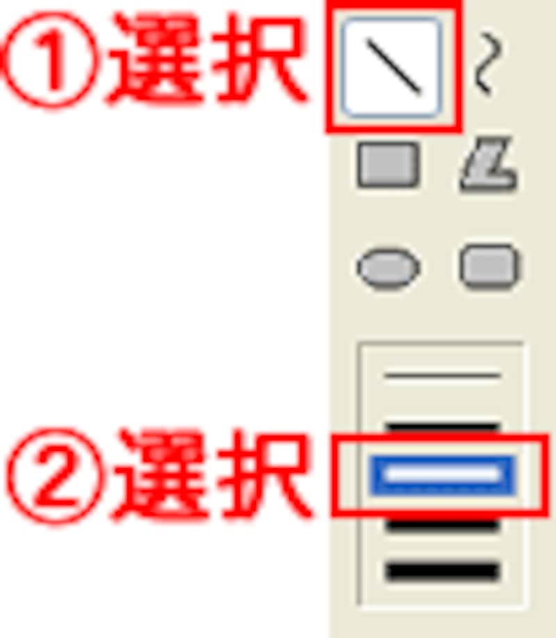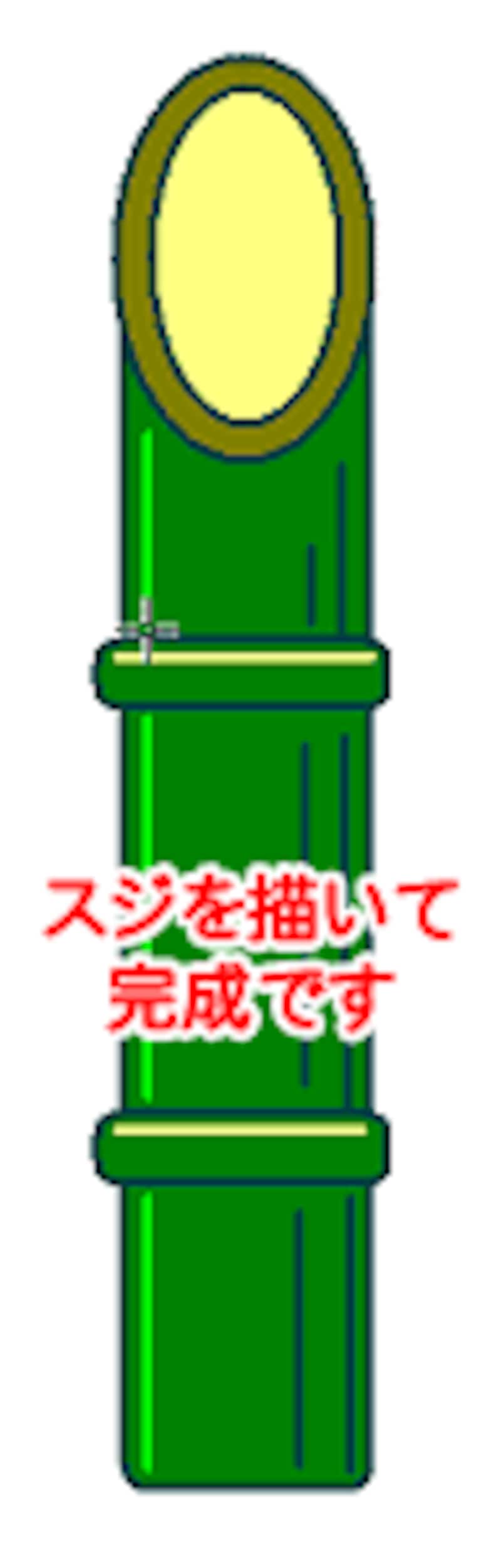 ツールボックスで「直線」の、2.「3番目の線」を選び、黄緑やクリーム色などの前景色を使って直線のスジを描いてアクセントを付け、竹の完成です。