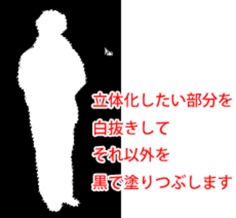 これを元に、立体化したい箇所を指定するためのマスク画像を作成します。