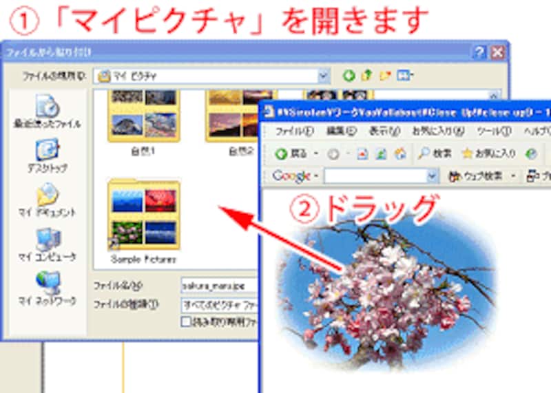 2.ここに下図の「sakura_maru.jpg」をドラッグ&ドロップして保存します。
