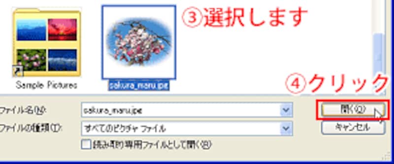 3.保存されたファイルが選択された状態で、4.[開く]をクリックします。