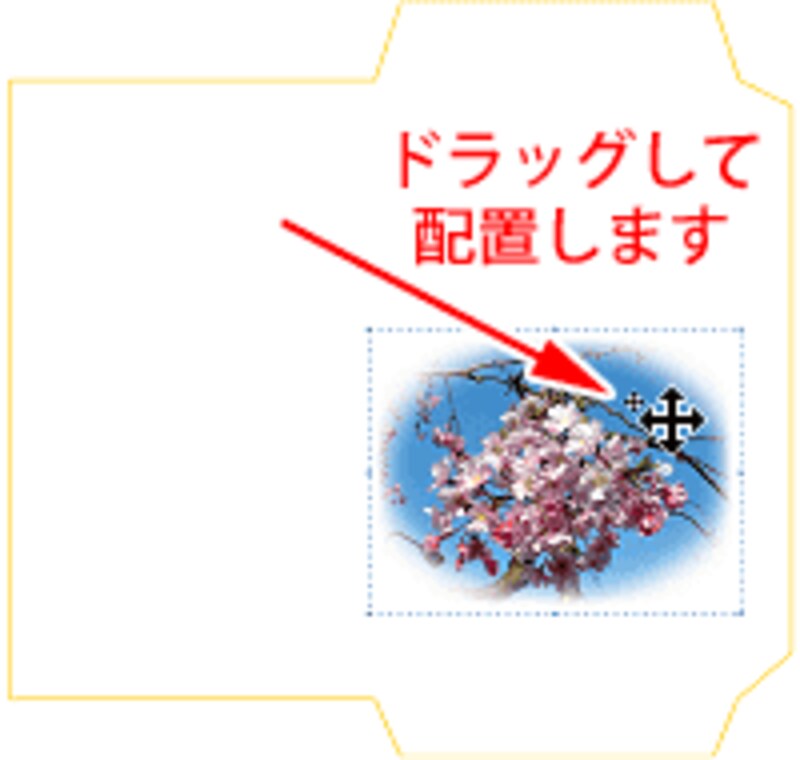 貼り付けられた写真を、右下方向にドラッグして、袋の表側に表示されるように配置します。