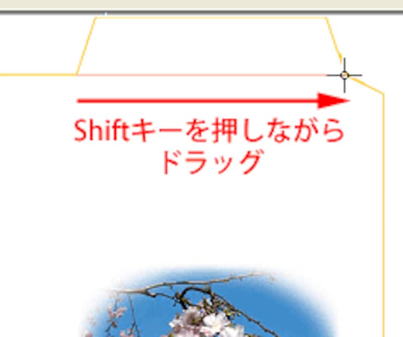 台紙の右上にあるタブの付け根を、[Shift]キーを押しながらドラッグして水平な線を引きます。