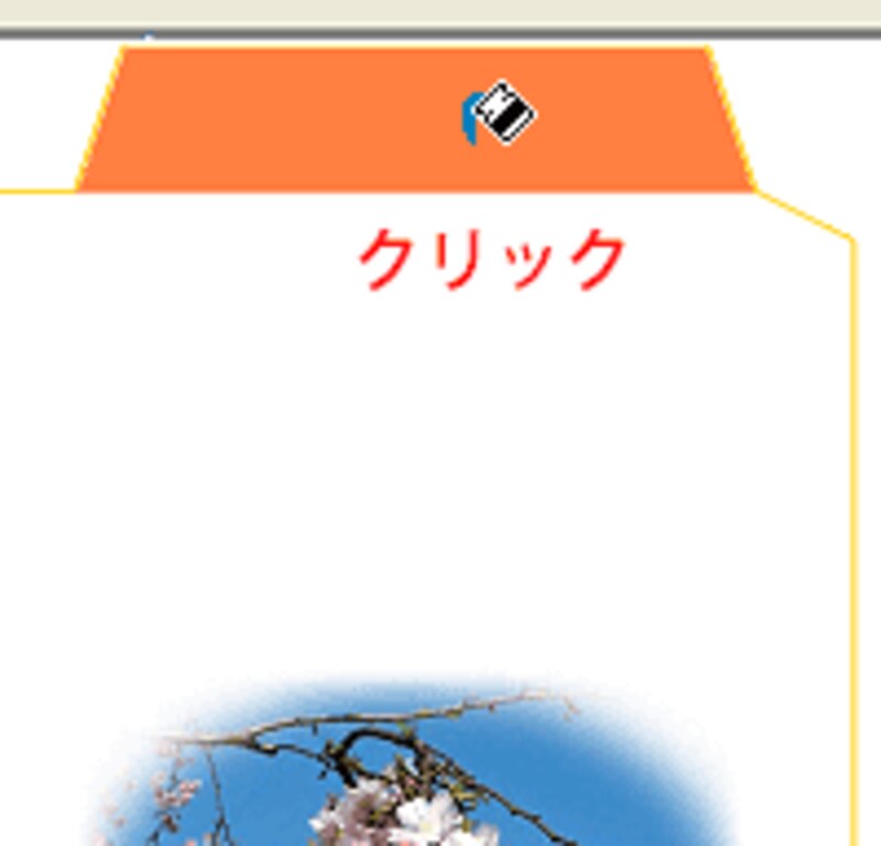 ツールボックスで「塗りつぶし」ツールを選びます。さきほどのタブの部分をクリックすると、「前景色」のオレンジ色で塗りつぶされます。