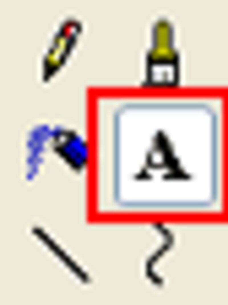 ツールボックスで「テキスト」ツールを選びます。色のパレットで今度は「赤」をクリックします。