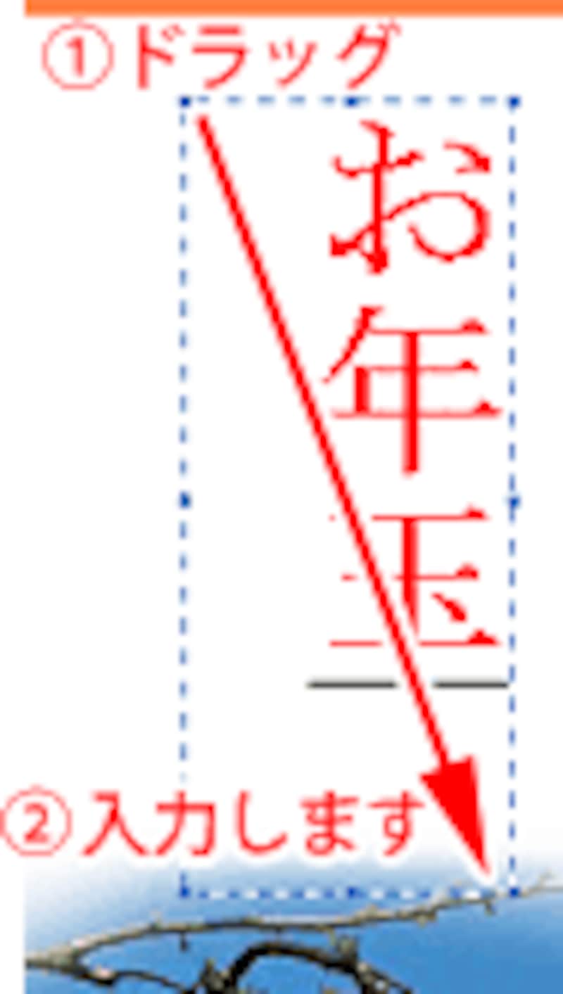 1.台紙の右側中央を縦長にドラッグして文字を入力する領域を四角で囲みます。