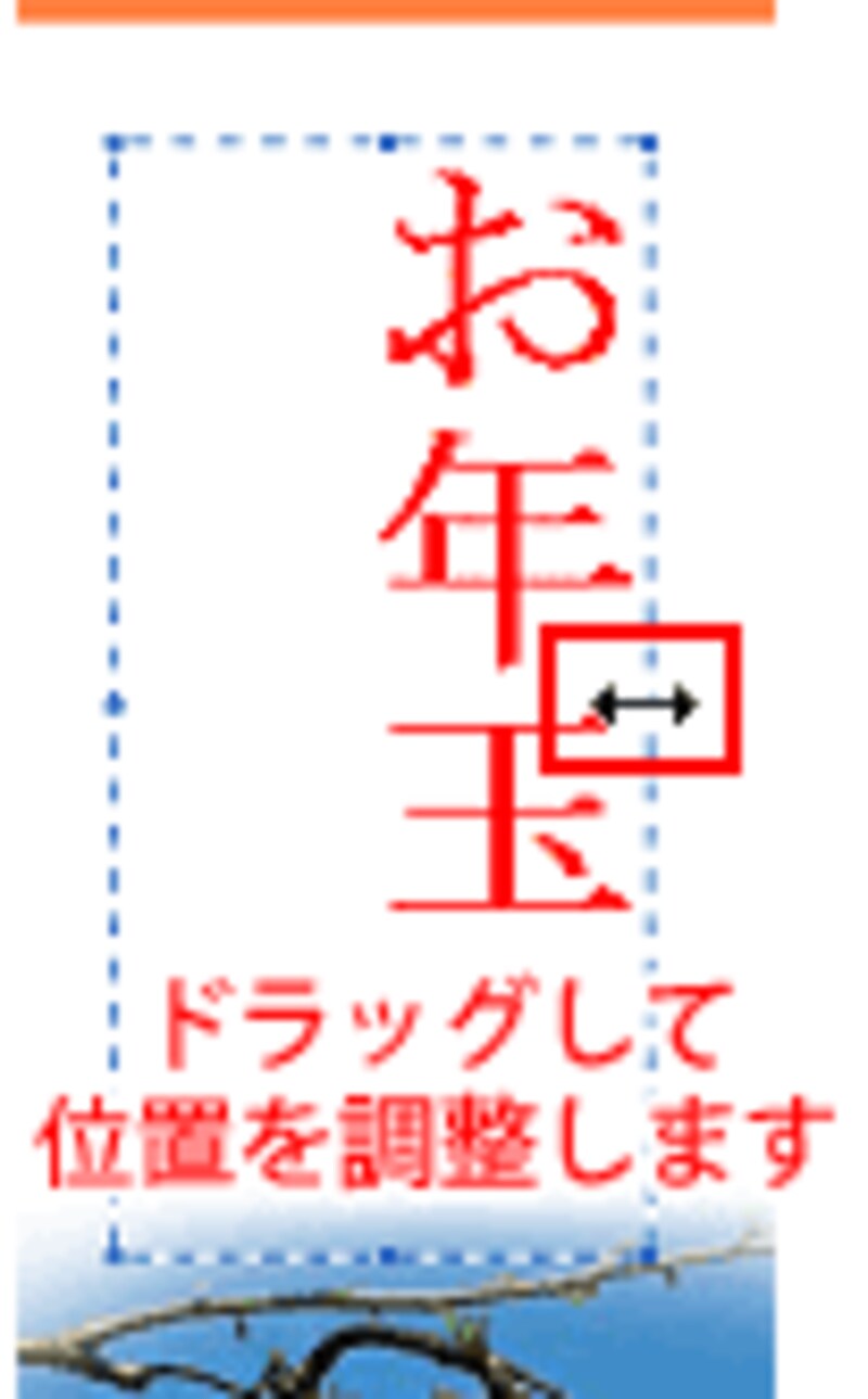 入力直後に枠線にある8つの点をドラッグして、文字の位置を調整します。