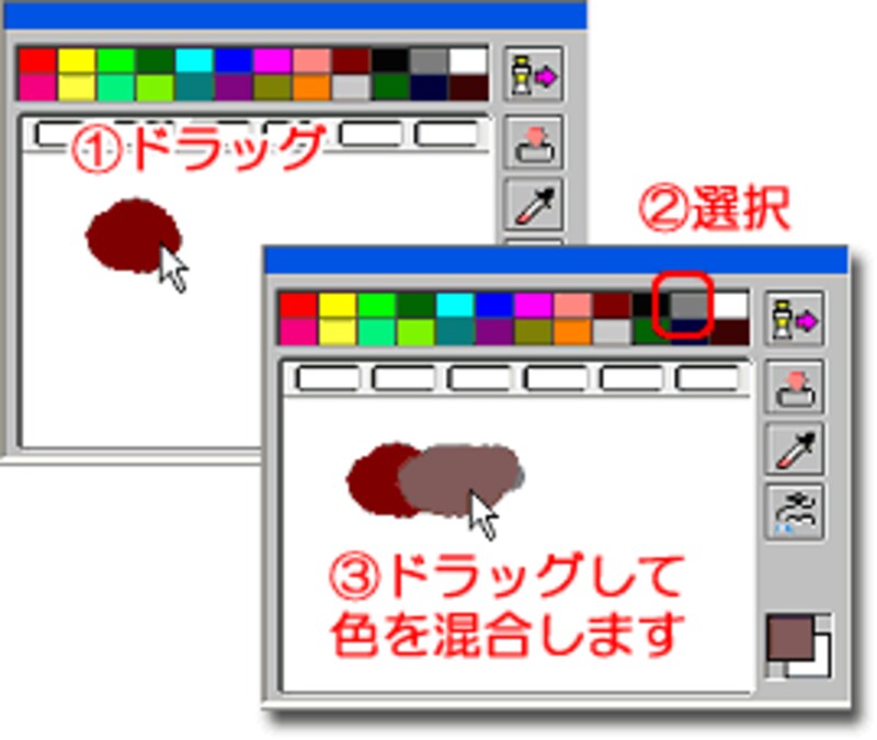 パレットで茶色を少し混ぜて、「薄い茶色」を作ります。