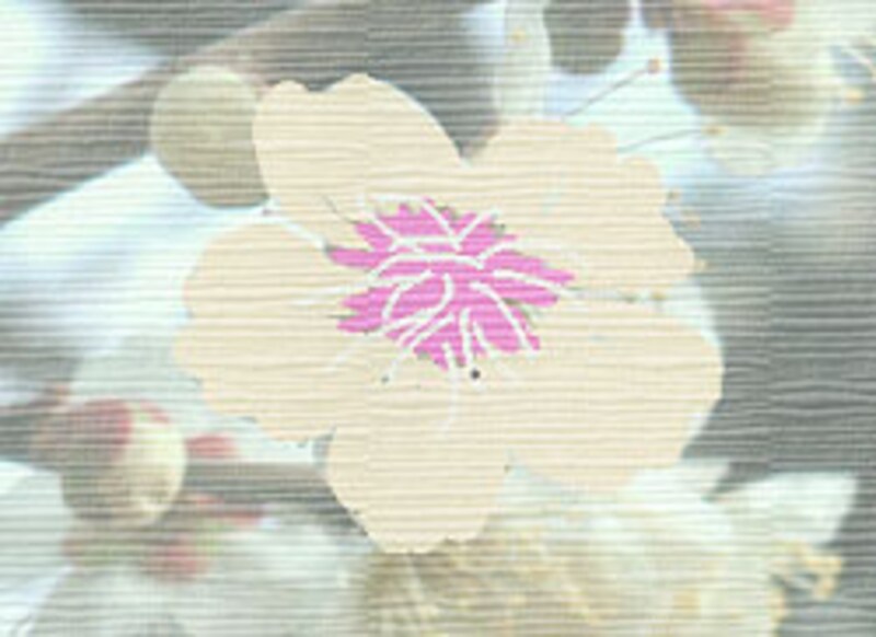 次のページでは、背景を色づけて花に透明感を加えます。文字を加えて完成です。