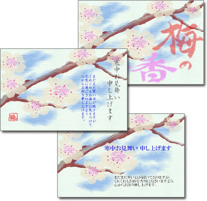 さらに手書きの文字や「描画ツール」の「文字」を使って、 寒中お見舞いの挨拶文を加えて、絵手紙として完成させます。