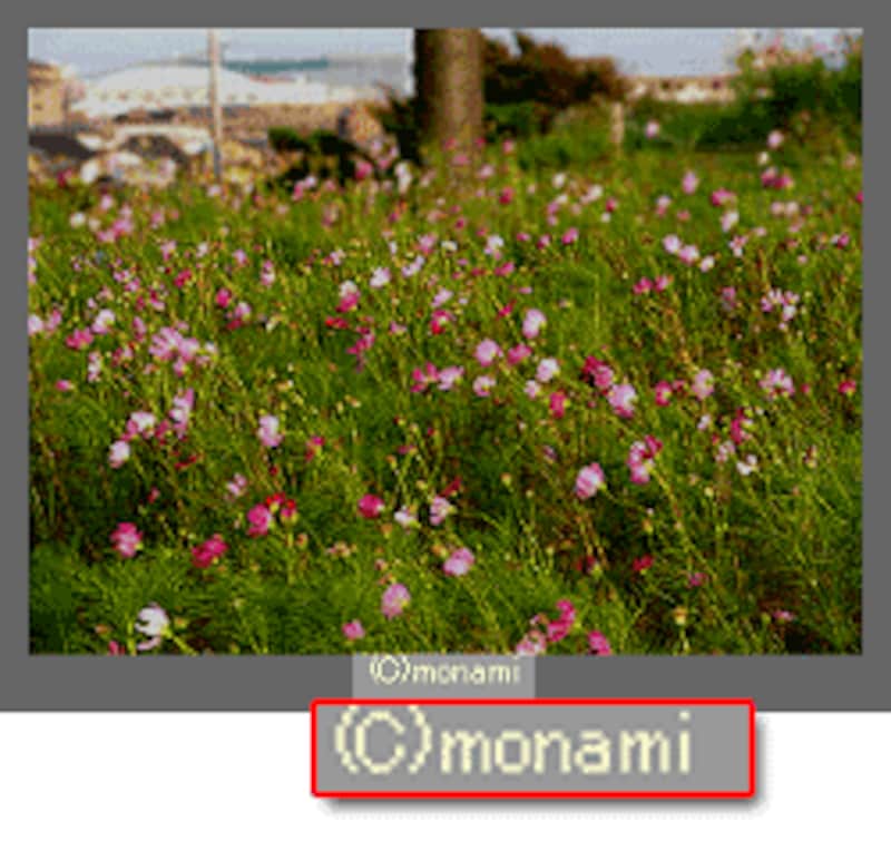 「COPY RIGHT」や「(C)」の後に自分の名前を入力するだけ…枚程度の写真でしたらさほど手間はかからないとしても、ネットオークションの出品写真やショップサイトの商品など、数多くの写真にひとつひとつコピーライト表記を入れるのは大変なものです。そこで他の数多くの写真に次々とコピーライト表記を貼り付けることができる簡単な方法を随時ご紹介していく予定です。