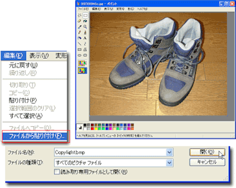 メニューの[編集]→[ファイルから貼り付け]を選び、先ほど保存したサインを開きます。