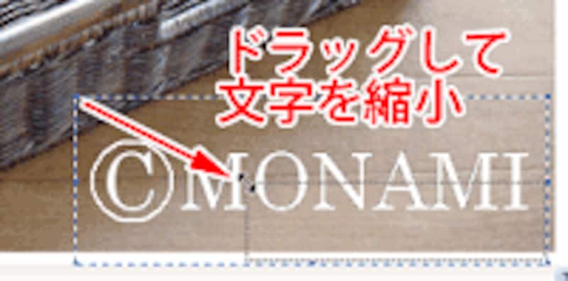 また、文字が選択されている状態でしたら、文字をドラッグして縮小することもできます。