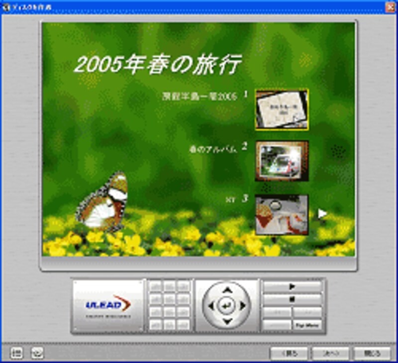 メニューなどの編集を終えると、書き込みをする前にプレビューでの確認ができます。 サムネールをクリックしてムービーを再生するなどして、最終チェックを行います。↓