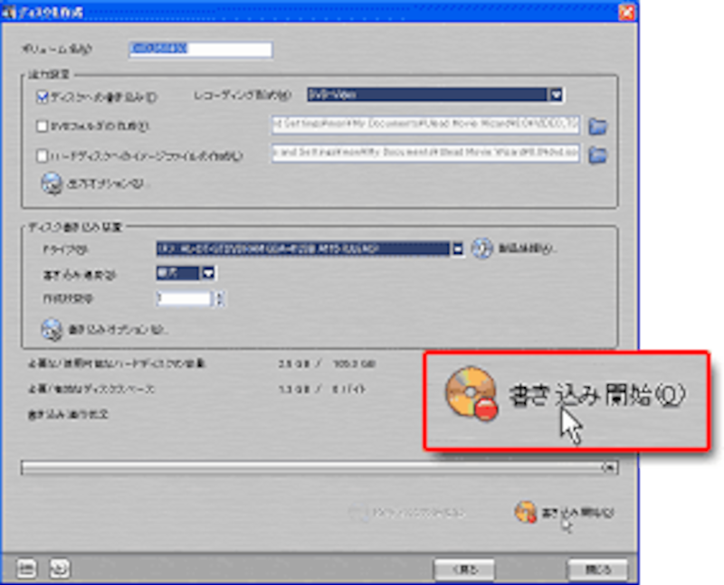 確認が終わったら、ディスクへの書き込み設定を行って、DVDに書き込みを開始します。「プロジェクト設定」で16:9の表示アスペクト比に設定できます。↓