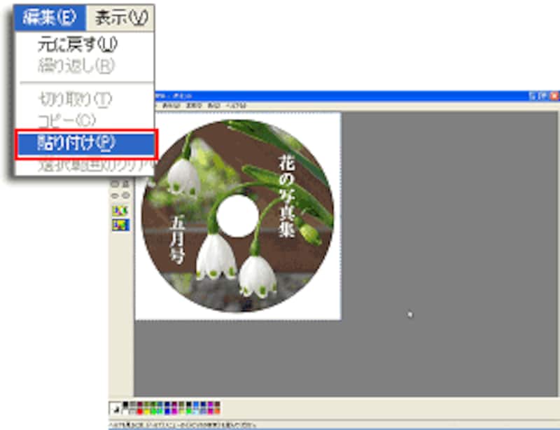 [編集]メニュー→[貼り付け]を選びますと、先ほどコピーしたラベル画像が表示されます。↓
