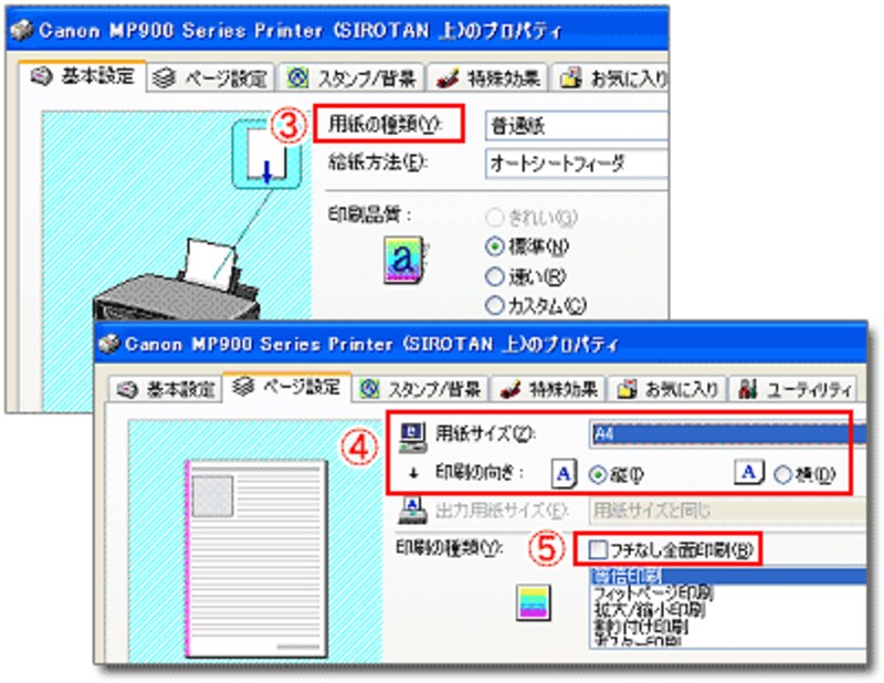 [用紙の種類]では印刷をする用紙品質に適した設定をします。