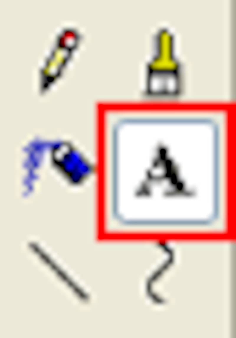 ツールボックスの[テキスト]ツールを選びます。色のパレットは前景色が「黒」、背景色が「白」になっています。↓